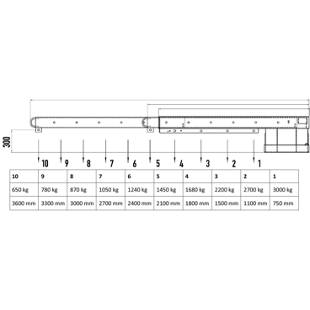 teleskopski izvlek, nosilnost 650 – 3000 kg