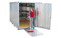Tudi skladiščni vsebniki so odlična rešitev za gradbišča, razširitve skladišč ali druge prostorske razmere. Takšni vsebniki so posebej primerni, da v kratkem času in čisto preprosto omogočijo dodaten prostor za transport ali shranjevanje. Zmanjšajo transportne stroške in trajanje montaže ter so takoj pripravljeni za uporabo. Prednost skladiščnih vsebnikov se pokaže pri uporabi na spremenljivih lokacijah. Zato ni čudno, da jim pravimo tudi ''prostorski čudež'', saj omogočajo neštete načine uporabe v turizmu, športu in na prireditvah, na primer za shranjevanje pripomočkov, dokumentov ali opreme. Takšne vsebnike tudi vse pogosteje uporabljajo kot pisarne. Na gradbiščih, kjer so nujno potrebni prostori za upravo in načrtovanje, iz vsebnikov hitro nastane učinkovit delovni prostor. Vse naše različice so seveda robustno izdelane in vanje lahko v najkrajšem času shranite material, stroje in opremo. Skladiščni vsebniki ponujajo številne prednosti za cenovno ugodno in učinkovito postavitev začasnih prostorov. Če jih razstavite, pa prihranite stroške shranjevanja in transporta.