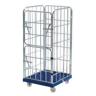 Voziček MODULAR , plošča iz umetne mase s kolesi, 3-stranska mreža, temno modra plošča